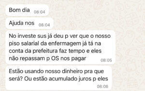 De acordo com dados do InvestSUS, plataforma oficial do Ministério da Saúde que monitora os repasses federais, os valores destinados ao pagamento do piso da enfermagem já foram creditados na conta da Prefeitura, mas até agora não chegaram aos trabalhadores.